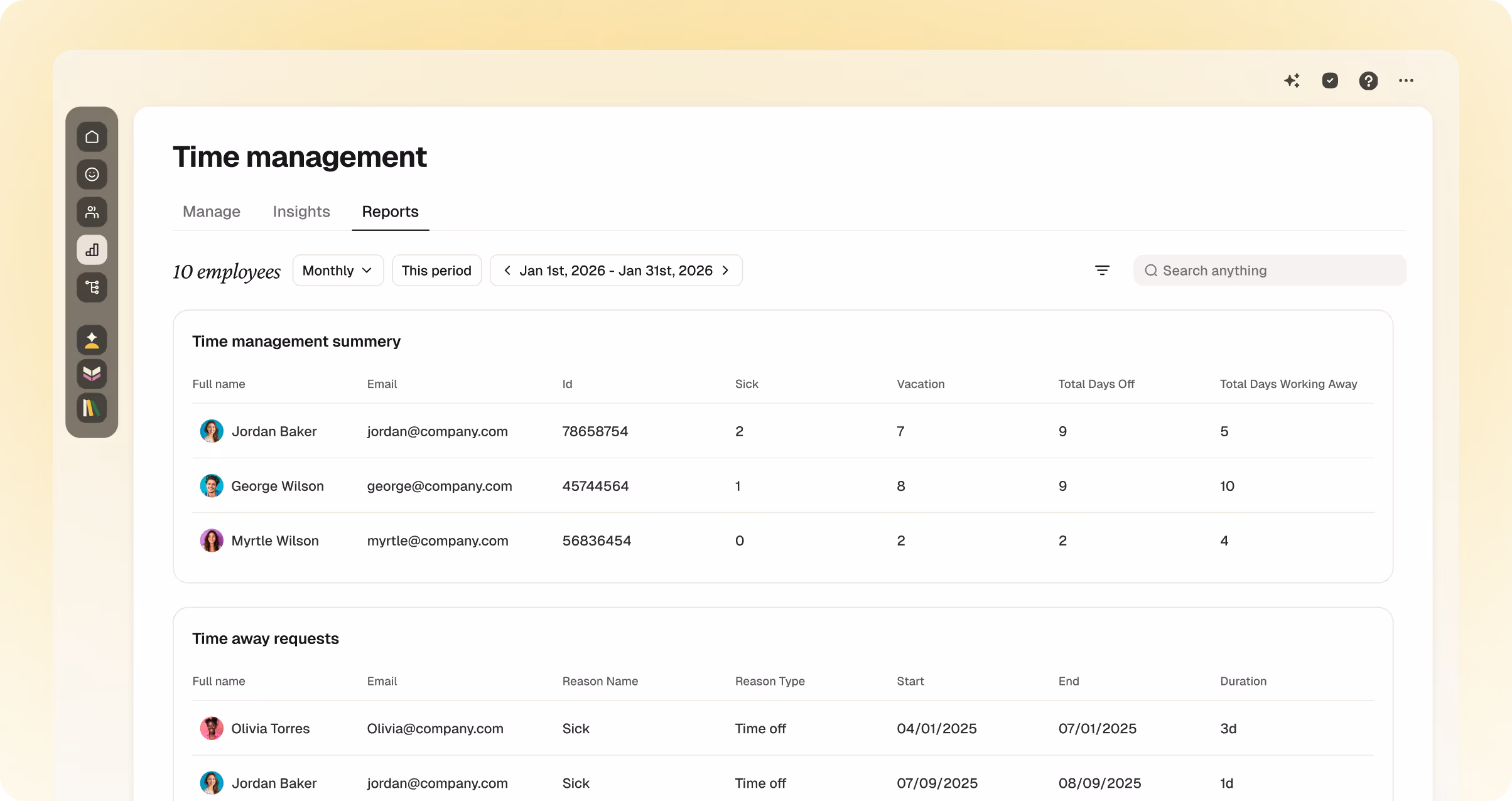 Let employees clock in from anywhere, set up your own tracking policies, and get working hours calculated automatically for payroll.