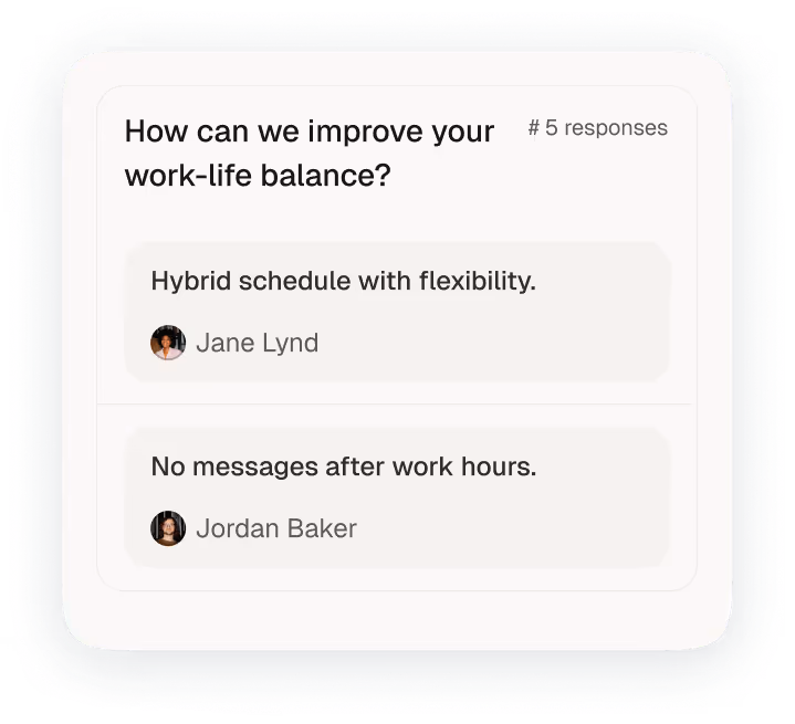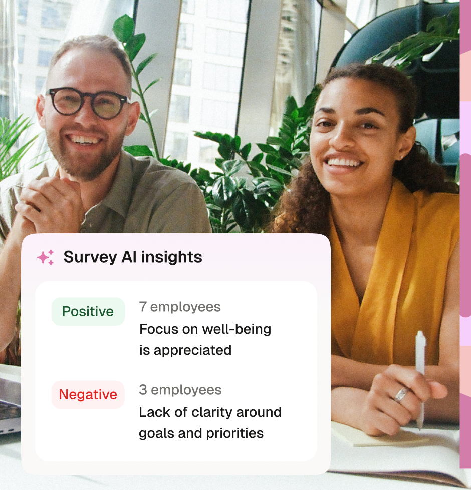 Run any survey — engagement, compensation, exits. AI surfaces patterns across responses and tells you what needs attention, so insights don't sit in a spreadsheet no one reads