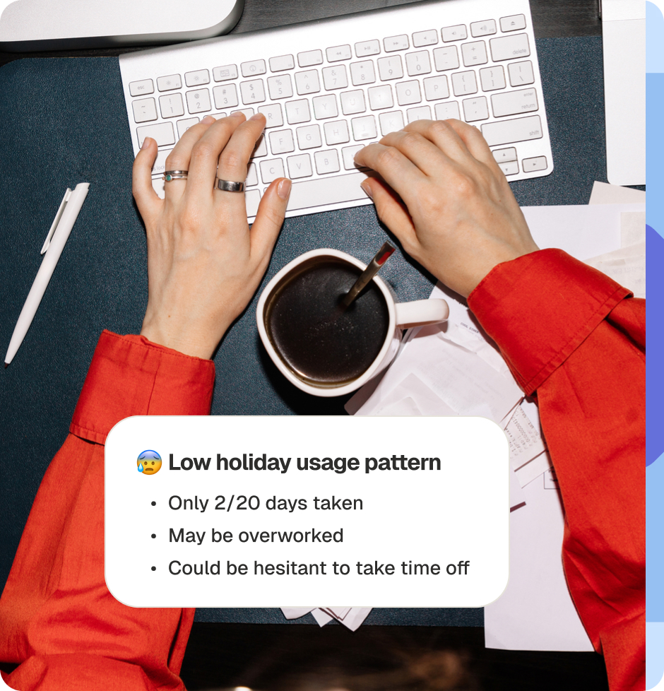 Live dashboards connect hiring, performance and comp data. AI spots patterns early: flight risks, burnout signals, pay gaps and tells you what to do next. No more waiting for exit interviews to find out what went wrong.
