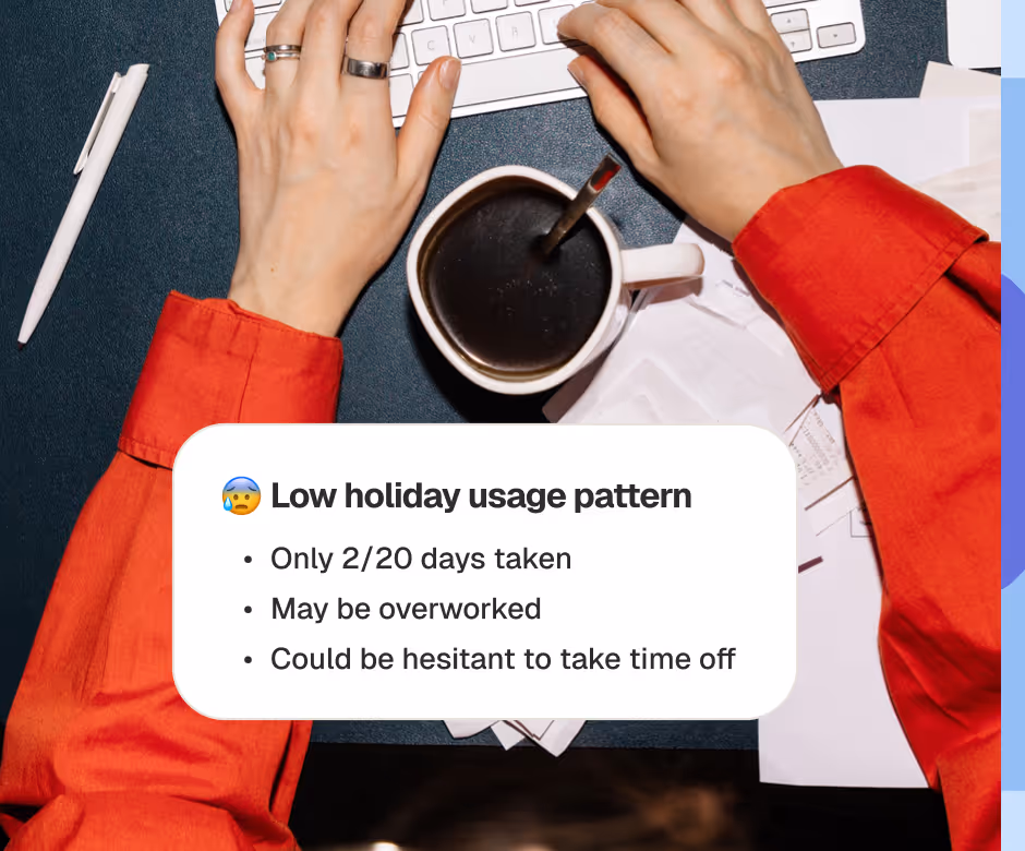 Live dashboards connect hiring, performance and comp data. AI spots patterns early: flight risks, burnout signals, pay gaps and tells you what to do next. No more waiting for exit interviews to find out what went wrong.