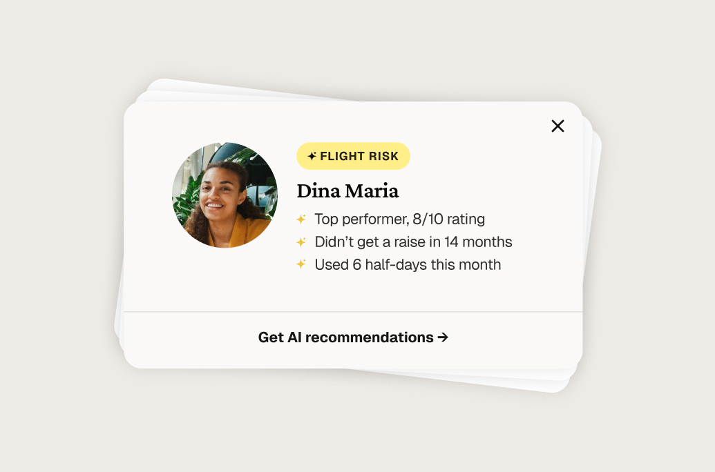 Shapes flags flight risks, surfaces disengaged high performers and spots patterns you'd never catch manually. Stop finding out when it's already too late.