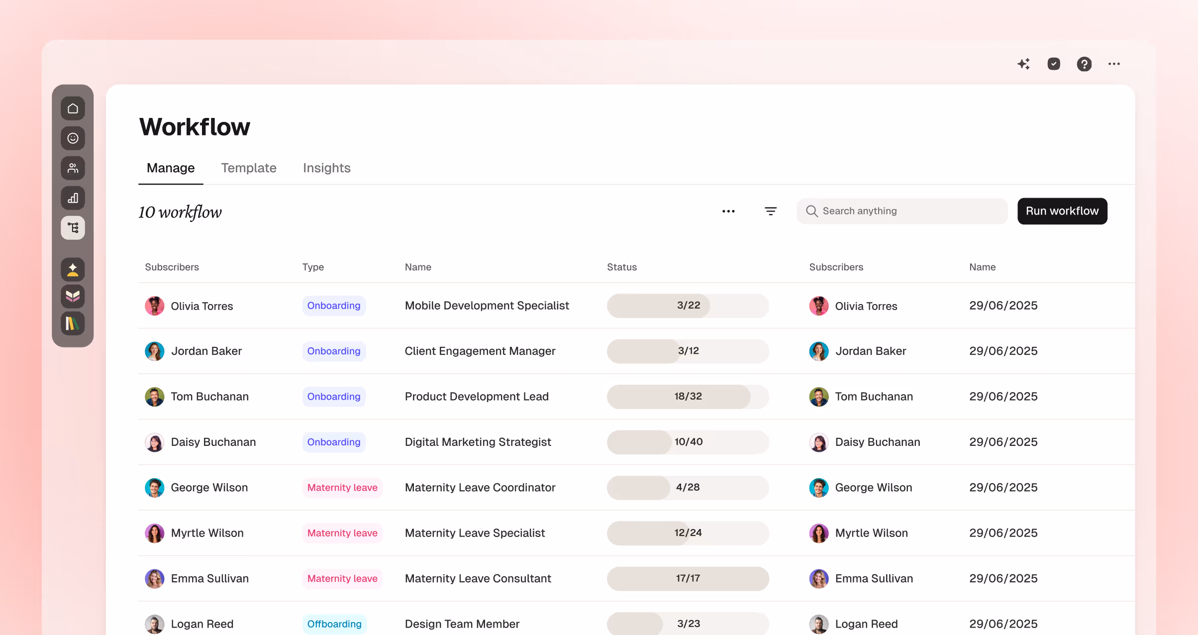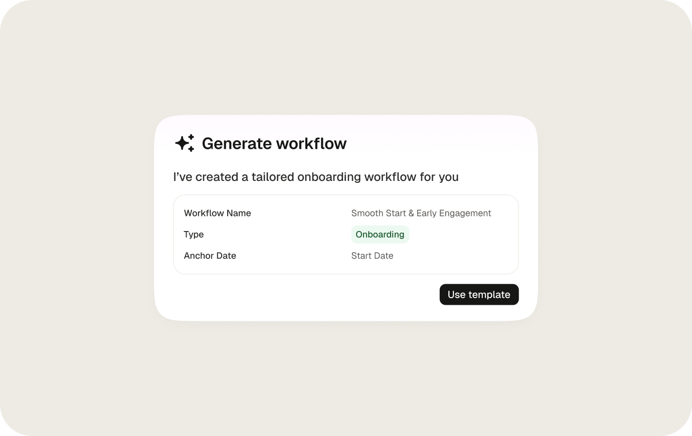 Automate your core processes with AI-generated workflows. From onboarding, to offboarding, and mat leaves – you can build and run them all in a few clicks.